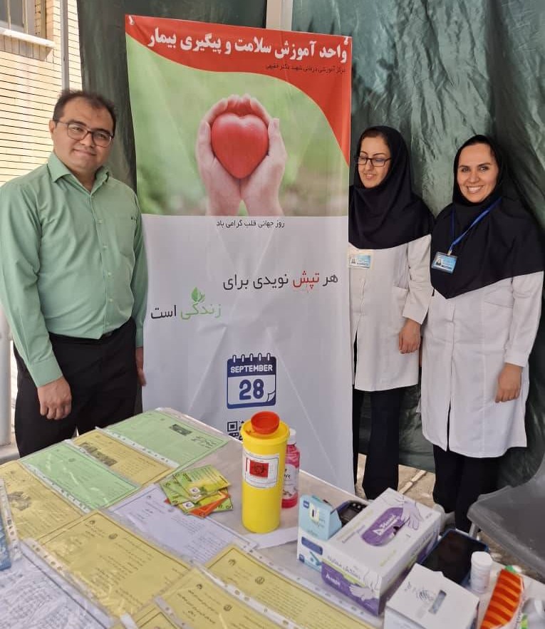 برگزاری برنامه های آموزشی و غربالگیری قلبی ویژه مراجعه کنددگان و کارکنان در بیمارستان شهید دکتر فقیهی انجام شد