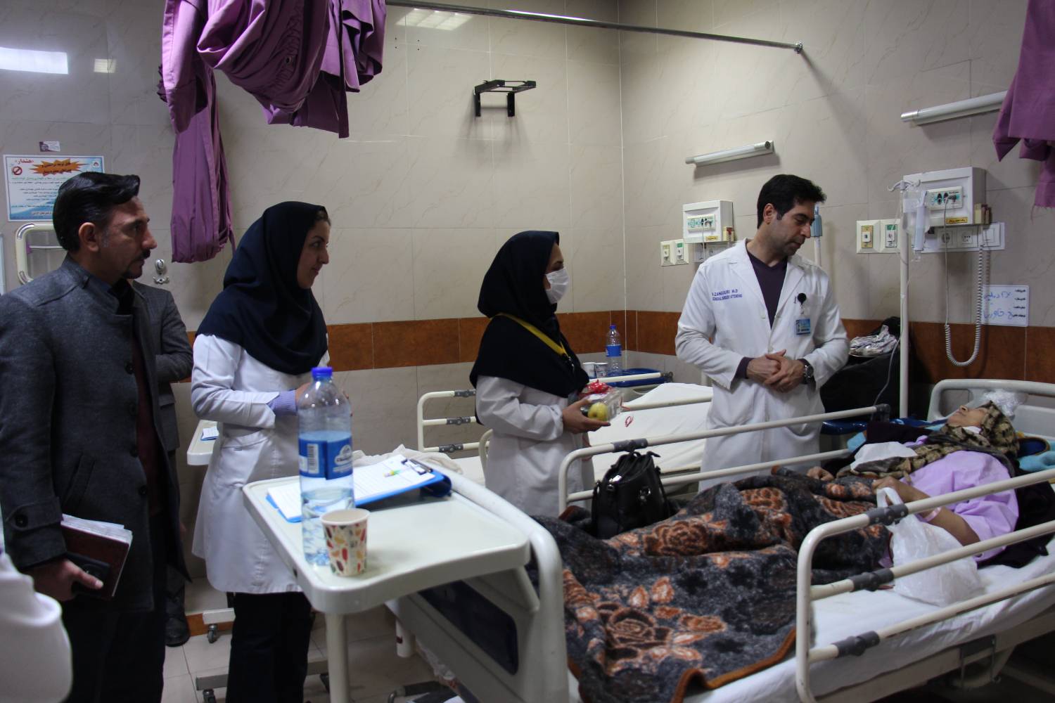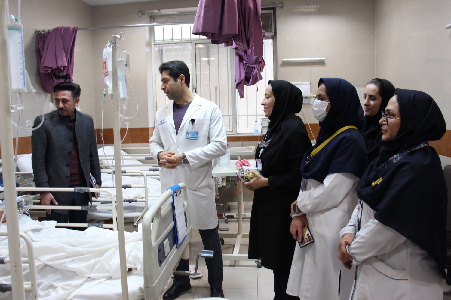 در این حضور، رئیس بیمارستان با حضور در بخشهای بستری، ضمن گفت و گو با بیماران و همراهان آنان، از نزدیک در جریان روند درمان، وضعیت سلامت و نیازهای بیماران قرار گرفتند و بر اهمیت حمایت روحی و روانی بیماران در کنار درمان های پزشکی تأکید کرد.